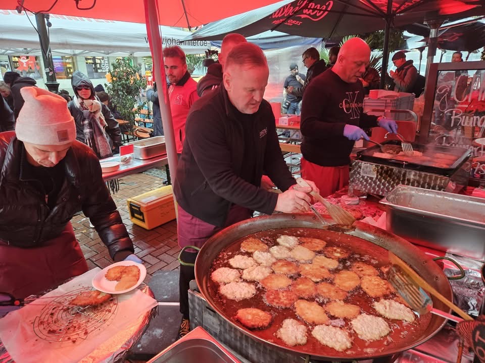 Mehrfach wurde auch auch das „Mittagessen für alle“ auf dem Düsseldorfer Marktplatz durchgeführt. Damit unterstützten wir den "Gute Nachtbus" und die Düsseldorfer Armenküche. Zuletzt haben wir in der Düsseldorfer Altstadt 3.000 Reibekuchen gebacken und verschenkt. Wer etwas geben wollte konnte spenden. Dabei sind 1.440 Euro zusammengekommen. Während der Corona Pandemie haben wir uns gemeinsam mit der Schumacher Altbier Manufaktur eine Idee realisiert, bei der Geld für die Köbesse gesammelt wurde, die während des Lockdowns auf ihr Trinkgeld verzichten mussten.